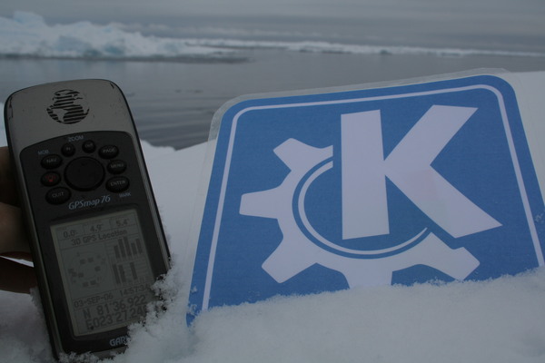 有一个朋友的姐姐在北纬 81 度拍摄了一张 KDE 标志的照片,距离北极只有几百公里。世界现在终于应该看到了。