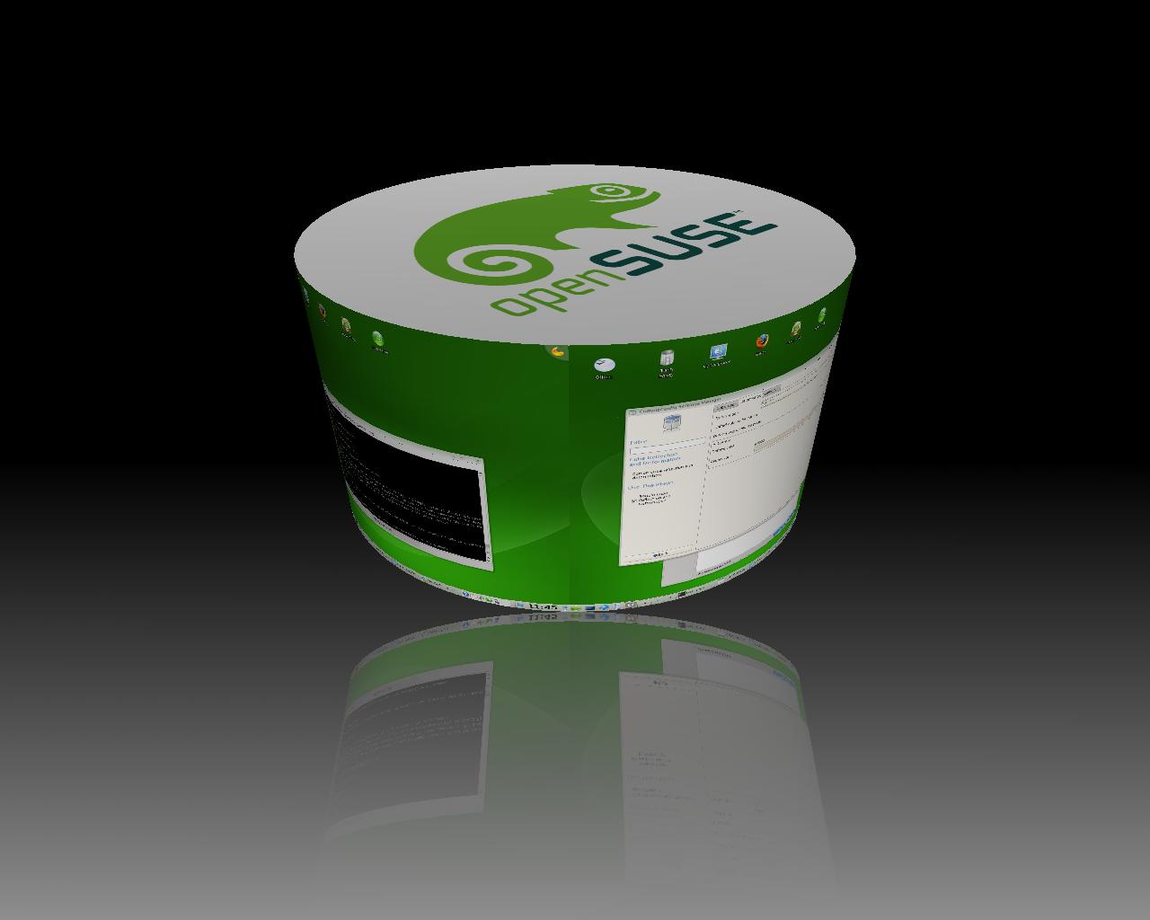 在 openSUSE 10.3 中,立方体反射插件可用,但现在您还可以将立方体扭曲成球形或圆柱形。