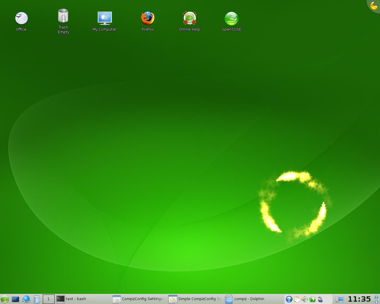 对于 openSUSE 11.0,Stefan Dirsch 和 openSUSE Xorg 团队的其他成员努力确保为所有支持的硬件默认启用 AIGLX。这意味着您可以运行 Compiz 或其他桌面效果,例如 KDE 4 中的效果,而无需直接启用 Xgl 或手动编辑 xorg.conf。