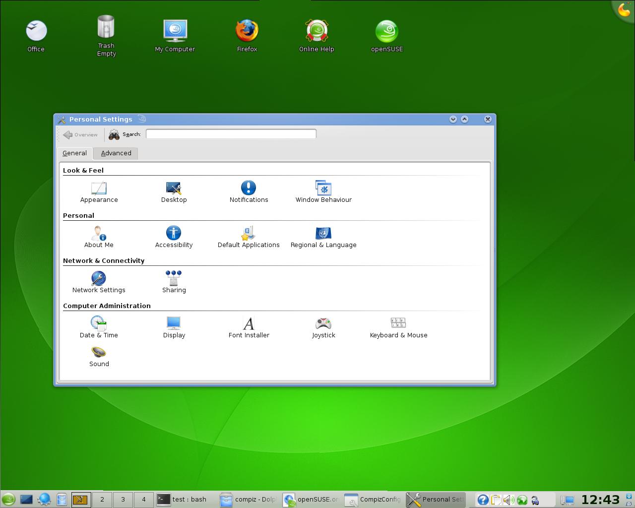 在 openSUSE 10.3 中,Compiz Fusion 在官方在线仓库中可用,并且包含所有额外 Fusion 插件的最新版本在 openSUSE 构建服务 中可用。但是,Compiz Fusion 项目已经成熟了很多,通过额外的插件、新的设置配置工具来补充 Compiz,现在默认安装在所有 openSUSE 11.0 安装中。