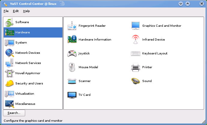 默认使用 Aya Plasma 主题。如果您更喜欢官方默认黑色 KDE 主题,只需单击几下即可。使用 KDE 4.0 时,YaST2 将使用 Oxygen 图标主题,以更好地与 KDE 4.0 集成。此外,YaST2 已移植到 Qt4。