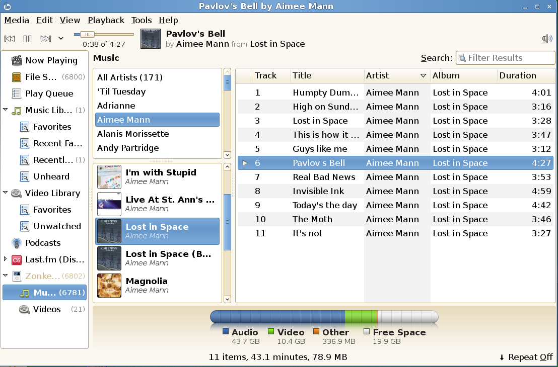 openSUSE 11.0 包含 Banshee 1.0。Banshee 媒体播放器已重新编写以提高性能,并包含许多新功能,包括视频播放、更好的“随机播放”播放、对 iPod、MTP 设备和海量存储播放器设备的支持,以及对播客和更好的 Last.fm 集成的支持。