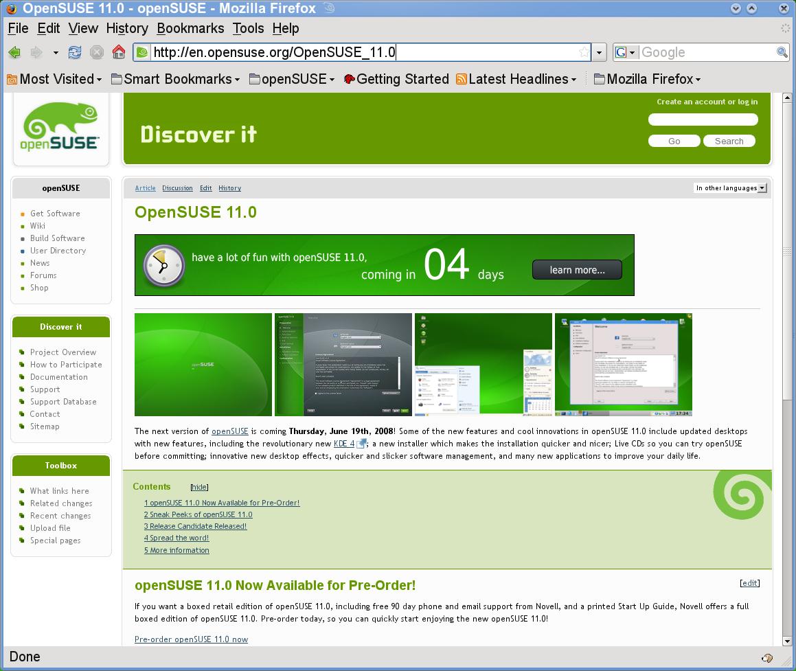openSUSE 包含最新版本的 Firefox 3.0,最终版本通过在线更新分发。这个新版本具有 多项改进,从用户名和密码管理到下载窗口的更改。