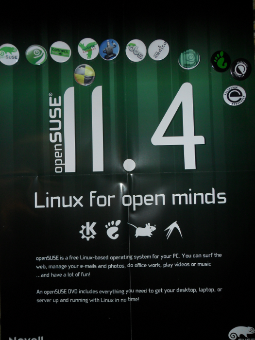 [/caption]周六晚上,openSUSE 社区在我们下榻的酒店为 openSUSE 11.4 发行版举办了发布派对。派对达到了目的,因为除了我们吃的蛋糕和喝的啤酒,我们还与 Ubuntu、Slackware、Gentoo、FreeBSD 和 OS-arena 等其他社区的人们走得更近了。晚上结束时,Red Hat 的人也来参加了我们的派对,我们住在同一屋檐下(酒店)。:P