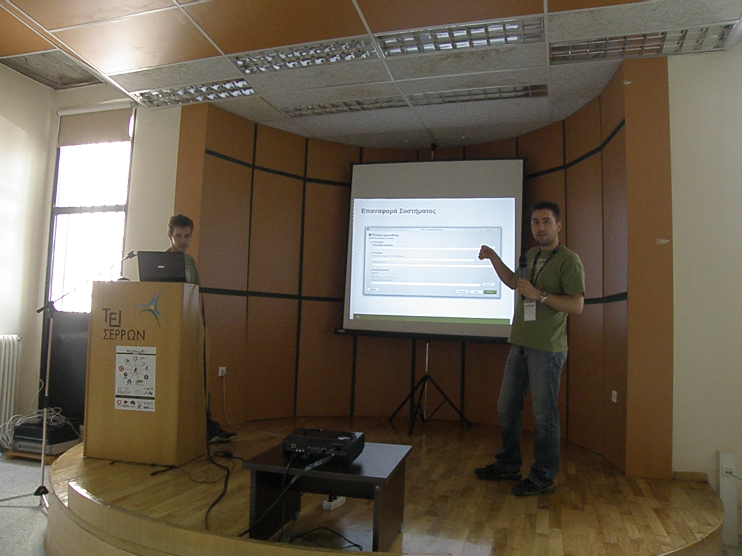 我们早上到达塞雷斯技术学院(Fosscomm 举办地点),以便注册并开始布置我们的展位。人们已经到了那里,他们非常兴奋,气氛热烈,许多人仍然有点醉醺醺或宿醉。展位工作人员、大使和参观者都在那里,了解有关 openSUSE、ownCloud、即将举行的 openSUSE 协作夏季营 以及 2013 年在希腊举行的 openSUSE 会议,以及布拉格的 oSC12 的信息。