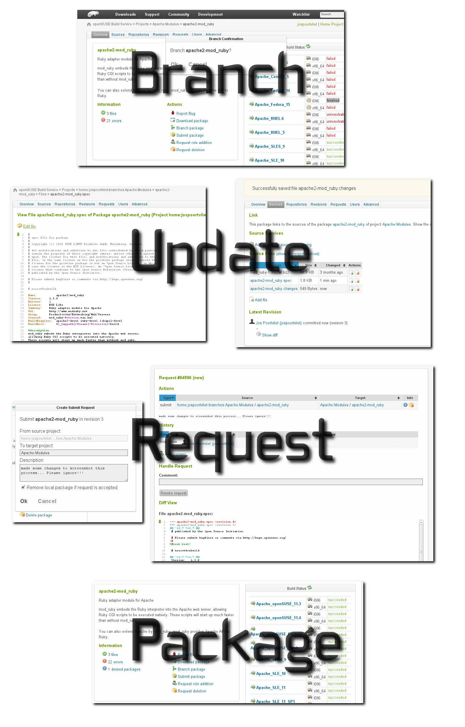 openSUSE 团队最近完成了对整个开发过程的更详细的文档编写,如果您感兴趣,可以从 此页开始,但请记住:兔子洞很深!