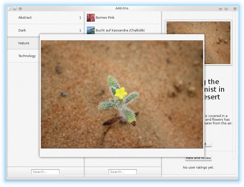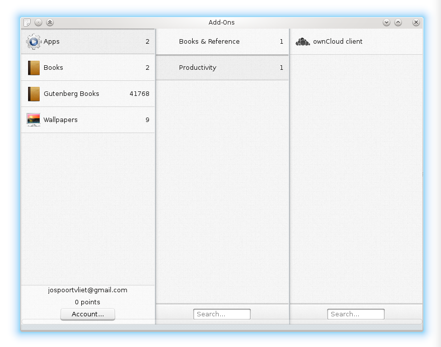 你可能渴望知道今天有什么。好吧,如果你看过旁边的截图,你知道有一个应用程序可以访问商店。它构建用于触摸屏,但可以很好地工作,你可以通过 software.opensuse.org 在 openSUSE 中获取它。安装后,你可以在运行命令对话框中键入“active-addons”来启动它。