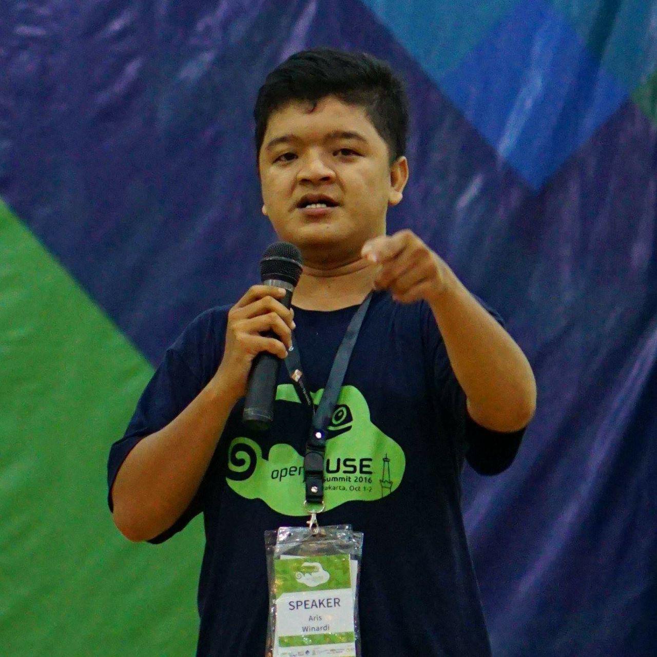 Aris Winardi 在 2016 年印度尼西亚日惹举行的 openSUSE 亚洲峰会上做报告[/caption]